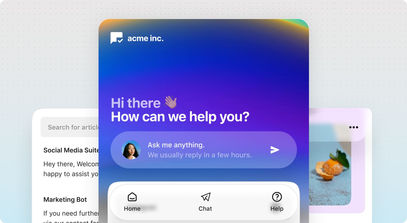 The External Chatbot Add-on has been upgraded into a fully customizable engagement tool. Branded homepage for your chatbot allows you to add custom links and channels. Built-in Help Center offers a searchable knowledge base for instant answers. Lead capture features allow email and contact detail collection through forms that sync with your CRM. Conversations are now more personal with emoji and file attachment support, and GDPR compliance is ensured with consent message options.